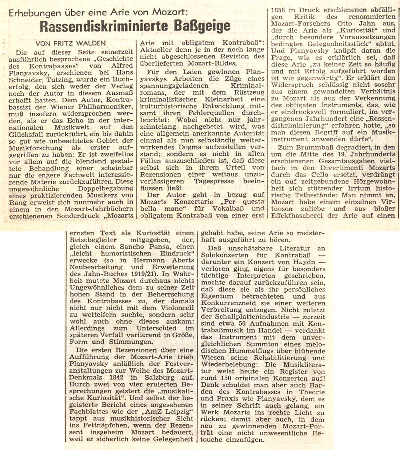 Das Wiener Kontrabaß-Archiv ist ein Appell zur Besinnung auf die historische Rolle des Kontrabasses, ein Mahnmal versäumter Aktivitäten, ein Brunnen für professionelle Leistungsspitze und ein Beichtstuhl für süskindliche Phantasmagorien über „Des Basses Grundgewalt“.