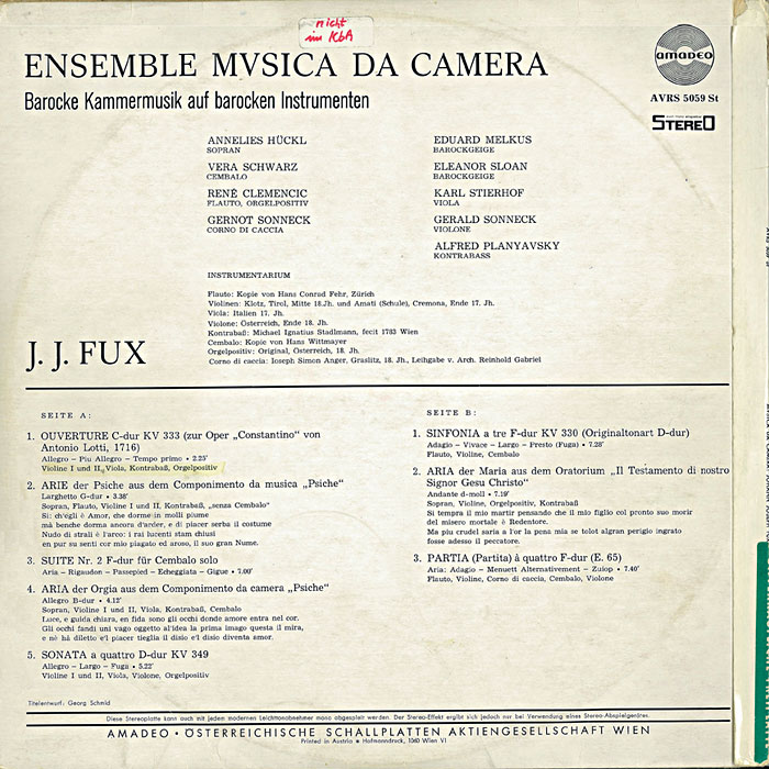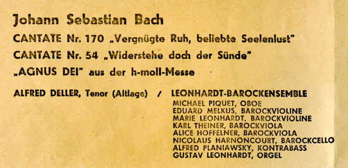 Eduard Melkus, Lionel Rogg, Huguette Dreyfus, Karl Scheit, Hans-Jürg Lande, Alfred Planyavsky.