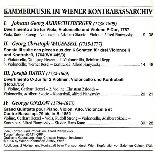 von M. Haydn sind 4 Trios, 7 Streichquintette, 5 Quintette, und 2 Sextette mit Kontrabaß bekannt. Auf die „dominierende Rolle des Kontrabasses in der Kirchenmusik Michael Haydns und Georg Albrechtsbergers“ hat bereits R. Klafsky (Diss, Wien 1911) hingewiesen.